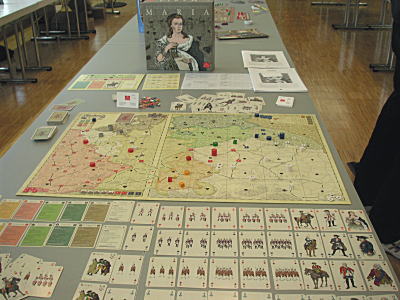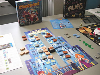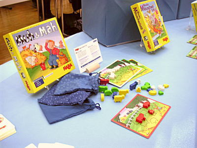 写真はQueen Gamesですが、アウトレットコーナーがあり、過去の作品が特価で販売されていました。