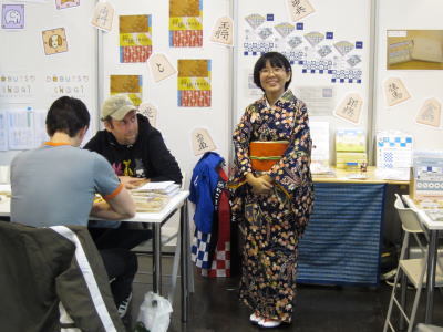 通りすがりのヤポンブース。どうやら売り物がまだ届いてないらしく、やることがなさそうにしていました。