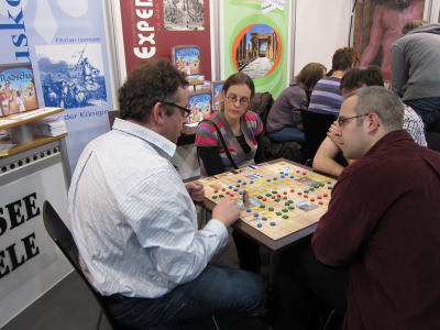 大きなゲームで遊ぶのは目立ちます。HABAくらいしか見なかったけれど、今年はアミーゴにも。