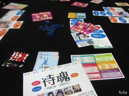 ・待魂(ションテンがりあー)まず終わった時の感想が「締め切りってこんなに延ばせるんだねぇ」となるゲーム。私は新人なので青いカードが良い感じ。テーマはちくちくするけれど、ゲームは楽しい。印刷所と仲良しになれば効果的で、そのためにカードをせっせと並べて、アイテムにも目を配って。同じ印刷所を入手すれば効果絶大。狙ってない時はおとなしく、ここぞって時にがんばる系。自分のキャラクター周りに言い訳が重なっていくのも読んでいるだけでおもしろい。それにしても、印刷所って大変だなーと思いましたw