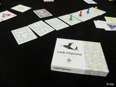 ・マジョマジョ -迷いの森と4人のウィッチ-(みみくりや)逃げている少年に3回タッチするゲーム。移動は基本1歩。カードの効果を使って少年を追いかけたり待ち伏せしたり。正直、この手のゲームにはまったく期待していなかったけれど、終わってみるとかなり良かった。ぎりぎりのところで次はタッチ出来る!と思ったら、カード効果で少年が進んで他の人にタッチしてしまい、そこからダッシュで2歩進まれてしまったり。土地によってカードを捨てなきゃいけなかったり。アクシデント的なイベントがタイミング良く発動していて、かなり楽しく遊べました。