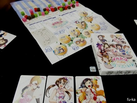 自分が担当するアイドルを全国行脚させてポイントを獲得していく。同じ土地にいればバトルでポイントを奪うことも出来るので、当然バトルが熱い。特に自分が担当しているアイドルの得意分野なら当然バトルするわけで。ところがバトルのダイス目次第で、次に比べる値が変わってくるのでそれが罠。勝って気分良くいたら、比べる値が変わったところをバトル申し込まれて敗北したり。特にポイントの高い地域は接戦。ポイントを奪って奪われて。唯一驚いたところは、いたるさんが「りっちゃん」を知っていたことw