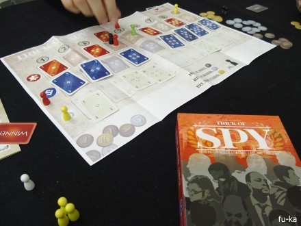 ・トリック オブ スパイ(カワサキファクトリー)ただのトリックテイクのみにあらず。マストフォローだけど色の強弱優先。そして誰がどの色の何を持っているのか観察しつつ、隠れた1枚を当てるためにビットしていく。そもそもトリックで勝つかビリじゃないとビット権利がない。誰かがビットしたところのカードを持っていて、にやにやしながらゲームを続けるか「持ってるよー」と早々に出してしまうか性格が出るかも?w 普通なら勝ちにいってしまうところを観察したり。きれいにまとまっていて軽めな感じなのに、展開は思い通りにいかないところが面白かった。