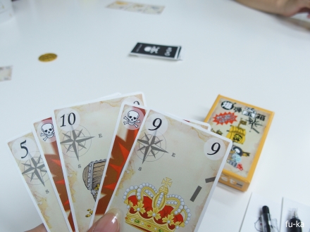 正直にお宝を仕込むか、嘘をついて爆弾を仕込むか。受け取ったら素直に受け取るか、持ち主に戻すか、他の人にカードを追加して押しつけるか。ポーカーフェイスで仕込むか、にこやかに仕込むか。嘘が嘘で疑心暗鬼になっていく。一瞬顔を見られ「いや、いや、いや」とカードを追加して他の人に押しつけるおのさん。ひどいw 目標点数まで遠い?と思ったけれど、終わる時は一瞬。爆弾は3発でアウトなので、時には強気で受け取るのも大切。