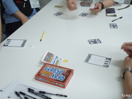 準備とインストで時間がかかったので、どんな流れで進んでいくのかさわりだけ。何せ最低8人は必要でGMも必要。そして、これは絶対翔さんにインストしてもらいたい!と勝手に思っていたので、遅れてきた翔さんにお願いする。これ準備段階のGMが一番大変かも。でも導入部分で時間切れ。気付けば翔さんがインストしかしてない!ごめんなさい>< でもおかげで一度はちゃんと遊んでみたいと思っています。