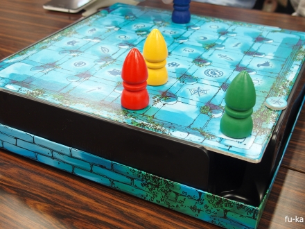 会場内はゲームをプレイするテーブルとステージになっていましたが、各メーカーで遊べるゲームも漫画の原稿が柱に貼り付けてありました。